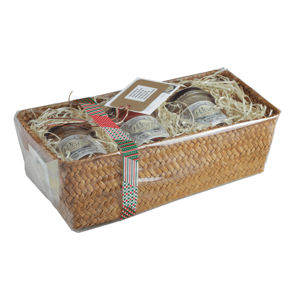 Un detalle muy original y dulce en una preciosa cesta de esparto. Amparo hace estas mermeladas con todo el cariño, la paciencia y los mejores ingredientes frescos (comprados diariamente en el mercado local) en su pequeño obrador de Tomiño. Sin colorantes ni conservantes. Natural cien por cien.