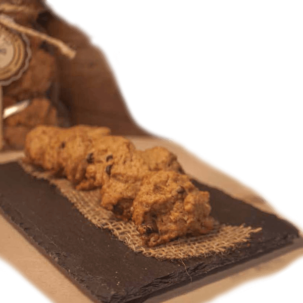 INGREDIENTES: Harina de centeno, harina de maíz, chocolate, azúcar moreno, manteca de vaca y huevos.