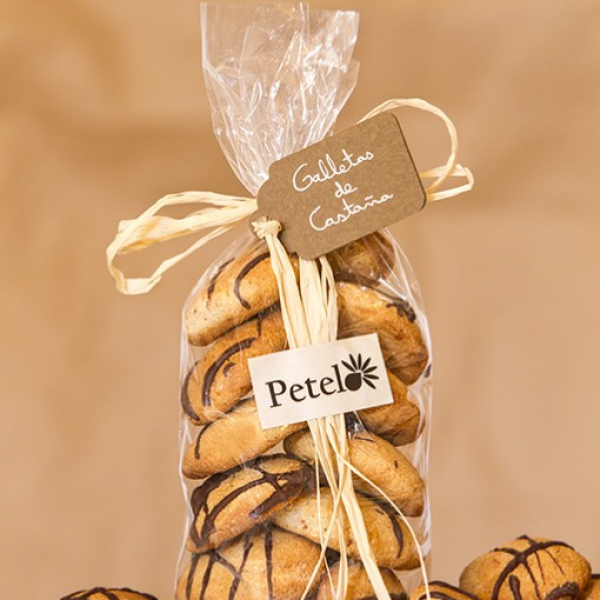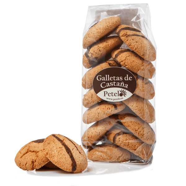 Elaboradas en un pequeño obrador de Allariz por Ramiro con harina de castaña, que aporta un sabor incomparable a estas galletas. Hechas a base de harina de castaña, harina de trigo, mantequilla, huevos, azúcar y una ligera capa de chocolate. El regusto a castaña mezclado con el resto de los sabores hace de ellas un capricho delicioso y exclusivo.