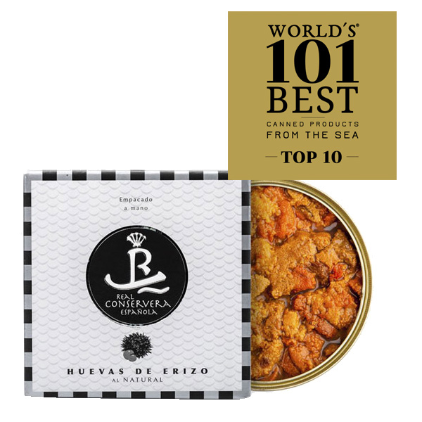 Conserva premiada dentro del TOP 10 de las mejores conservas del mundo en su categoría de Productos Especiales. Siendo el primero en Huevas de Erizo. Ranking 2021 World's 101 Best Canned Products from the Sea.