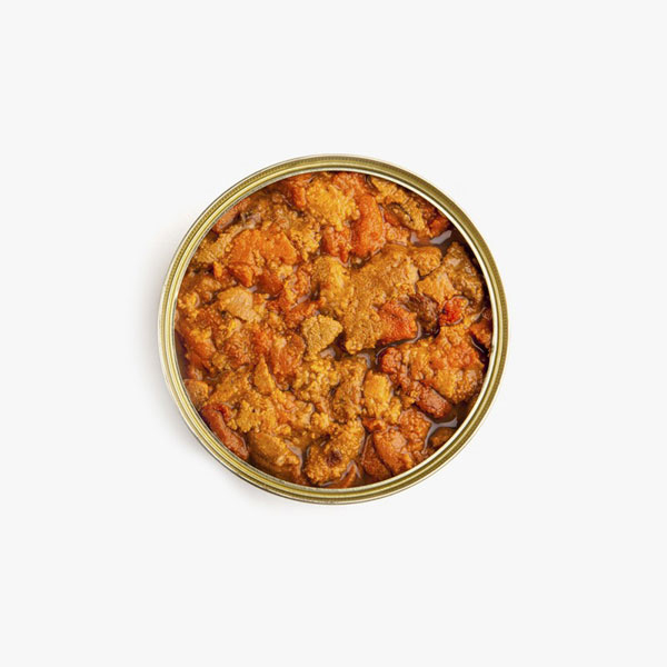 Ingredientes: Huevas de erizo de mar (Paracentrotus lívidus y Psammechinus miliaris) 96.5 %, agua<1%, cebolla<1%, laurel<1%, limón<1%, y sal<1%.