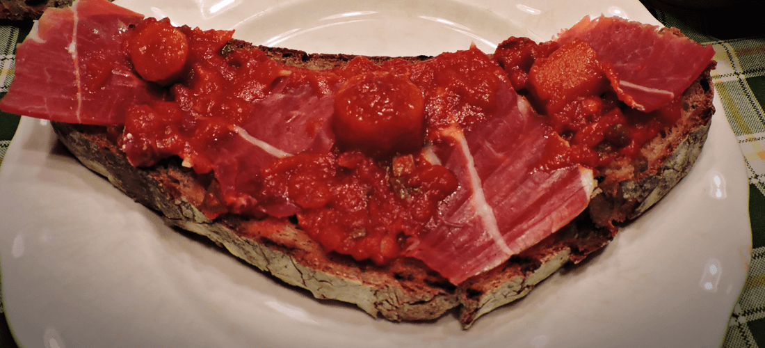 Tosta de verduritas con jamón Gran Reserva de Porco celta