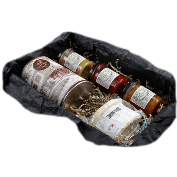 Dos mermeladas artesanas y naturales, sin espesantes ni conservantes: de pimiento y de manzana y castaña. Una confitura de tres cítricos, muy equilibrada y delicioso. Una cuña de Sto André curado, Ganador absoluto en el concurso de los quesos gourmet de España 2015.. Todo ello armonizado con una caja de Maruxas de Nata, galletas de nata ecológicas, de reconocido prestigio y muy premiadas. Un auténtico regalazo para la persona en la que estás pensando ahora.