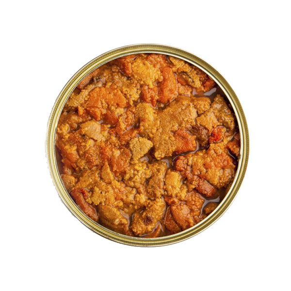 Ingredientes: Huevas de erizo de mar (Paracentrotus lívidus y Psammechinus miliaris) 96.5 %, agua<1%, cebolla<1%, laurel<1%, limón<1%, y sal<1%.
