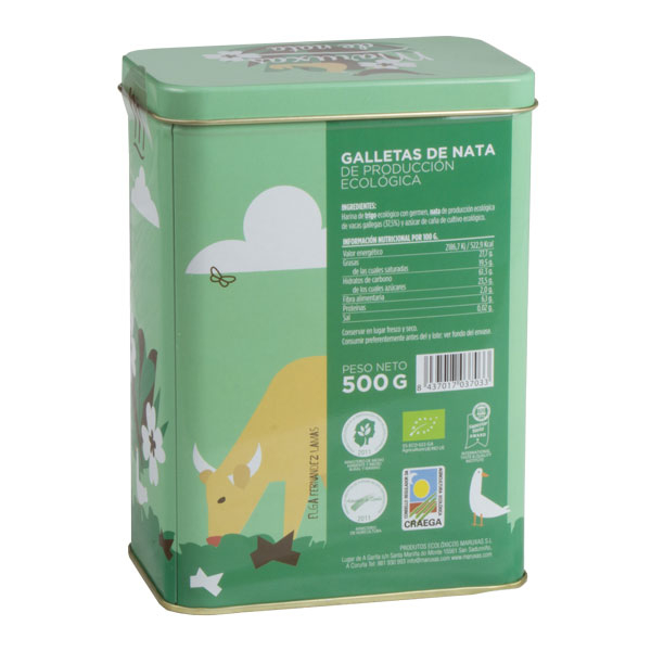 -Una caja de 500g de Maruxas de Nata. Galletas ecológicas con multitud de premios por su calidad.