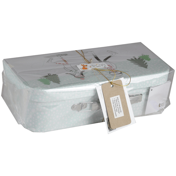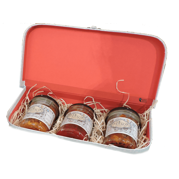 Un regalo muy original y dulce en una preciosa maletita metálica. Tres delicias dulces exclusivas. Preparadas especialmente para un regalo original. Hechas con esmero por Amparo en su pequeño obrador.