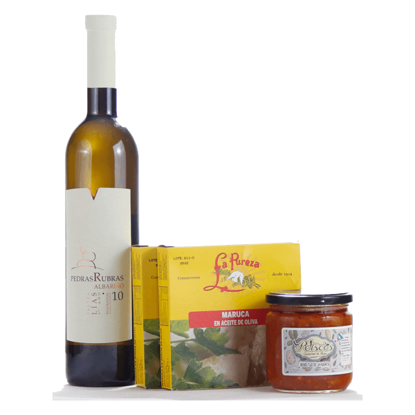 - Una botella de Pedras Rubras 2010, D.O Rias Baixas. con tres años de crianza en depósito en sus lías. Medalla de oro en el International wine Challenge 2012. Considerado el Oscar de los premios de los vinos.