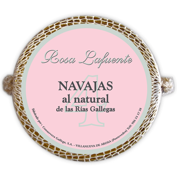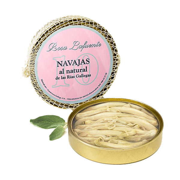 Descripción: Navajas al natural, de las rías gallegas. Por su calidad y textura son perfectas como aperitivo o primer plato. Deliciosas simplemente con un aliño suave. Grandiosas como ingrediente principal de un plato elaborado.