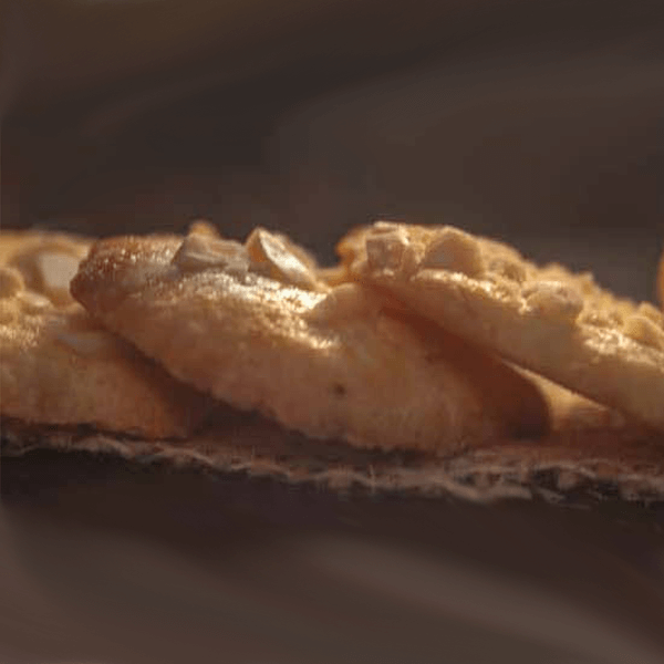 Pastas ligeramente crujientes. Intenso sabor a almendra, que junto con los demás ingredientes la convierten en una pasta perfecta para una merienda, sobremesa o picoteo. Un capricho justificado.
