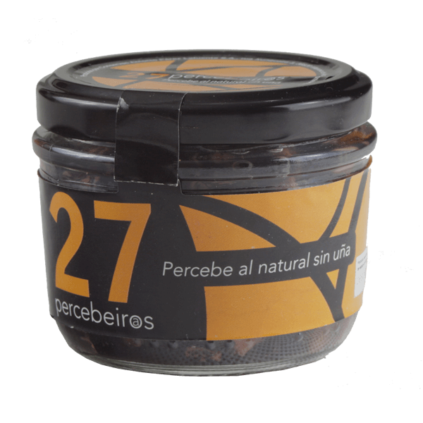 Descripción: Percebe cocido al natural, con agua y sal marina. cada ejemplar es pelado manualmente, retirándosele la piel y la uña. Se envasan de forma artesanal.