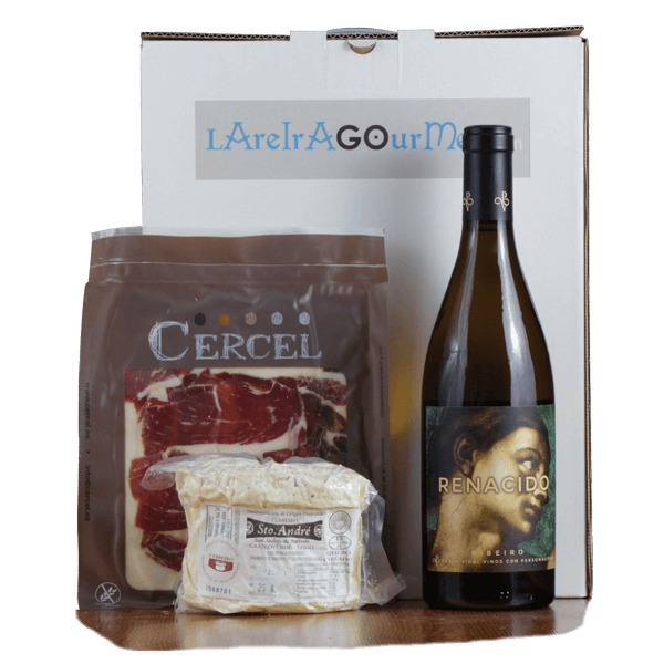 Un vino excelente acompañado por un increíble jamón Gran reserva de Porco Celta de Campo y una cuña de queso curado Sto. André, declarado el mejor queso de España en el concurso de los quesos gourmet del 2015. Harán que triunfes con los más exigentes.
