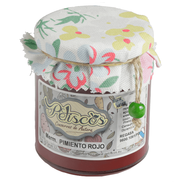 - Un tarro de mermelada de pimiento rojo. Artesanal y natural. Petiscos.