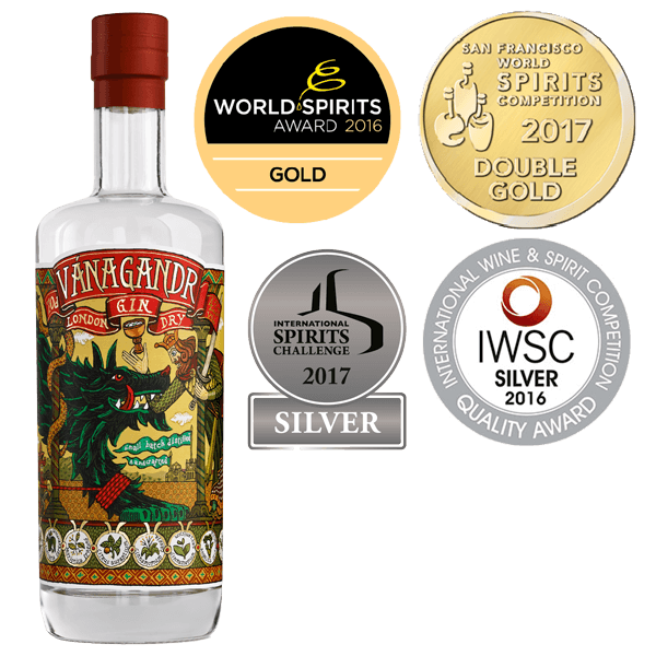 -Una botella de ginebra Vanagandr. Reconocida internacionalmente como una de las mejores del mundo.